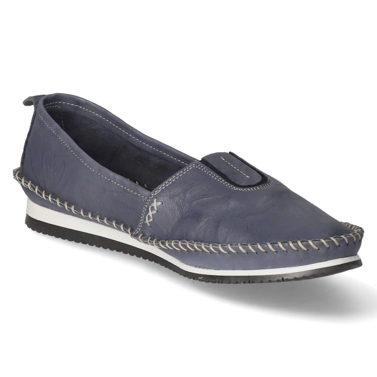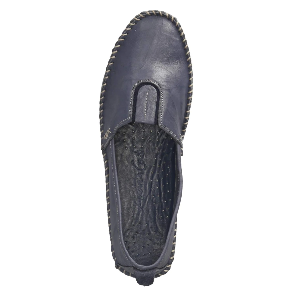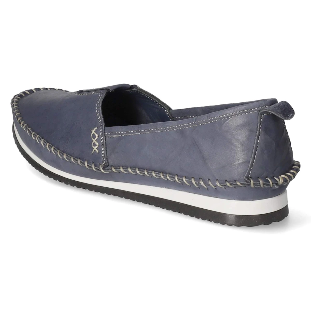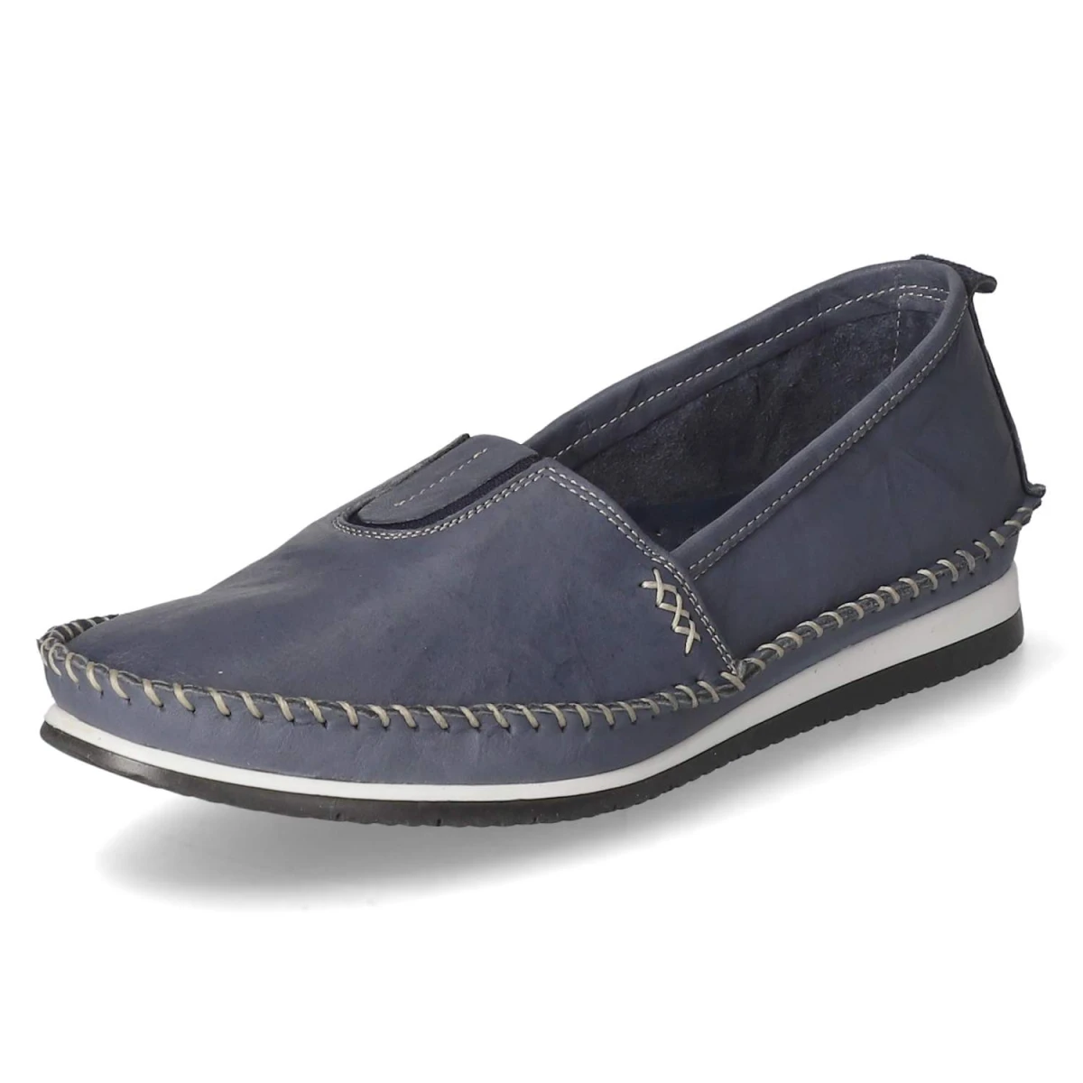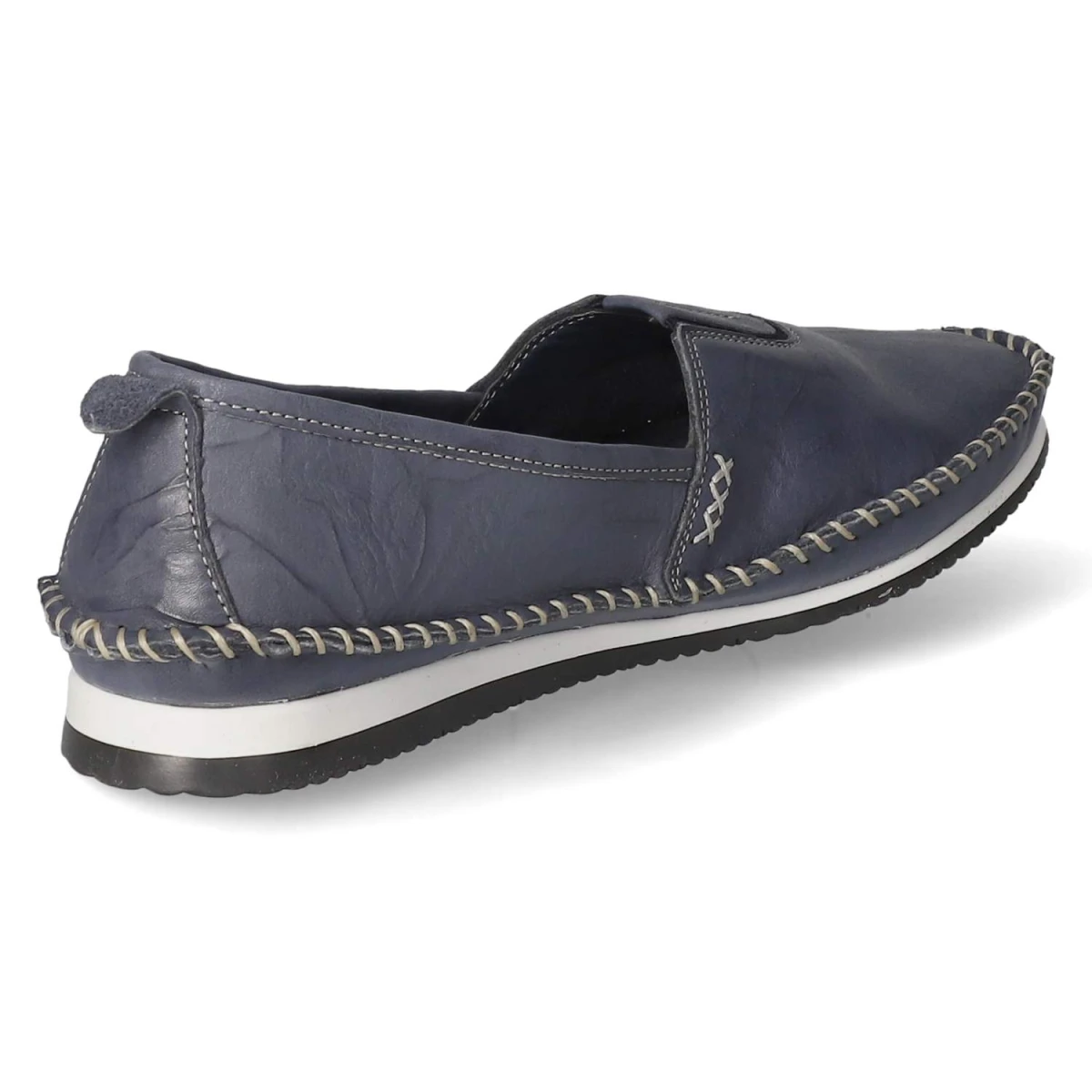 Dieser blaue Mokassin von Andrea Conti verbindet Leichtigkeit mit Komfort für den ganzen Tag. Feines Glattleder mit atmungsaktiven Eigenschaften legt sich sanft an und wird von einem geschmeidigen Lederfutter begleitet. Der unkomplizierte Einstieg ohne Verschluss wird durch die Anziehhilfe und den elastischen Einsatz am Spann erleichtert, das kleine Emblem setzt einen dezenten Akzent. Die runde Spitze sorgt für entspannte Proportionen, während die flexible Laufsohle mit Grip souveränen Halt bietet. Die lederne Decksohle sowie das herausnehmbare Wechselfußbett unterstützen ein individuelles Fußbettgefühl, auch bei längeren Wegen. Charaktervoll zeigen sich rustikale Ziernähte, die dem klassischen Mokassin-Design Tiefe verleihen. Normal ausfallend und vielseitig kombinierbar. Modetipp: Mit Anzugweste, Wide-Leg-Jeans und feiner Crossbody entsteht ein aktueller Tailoring-Mix.