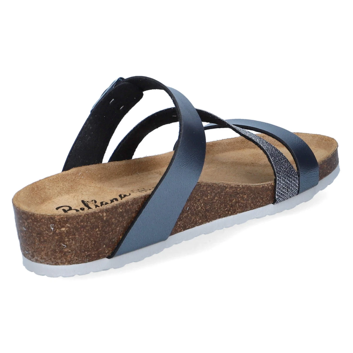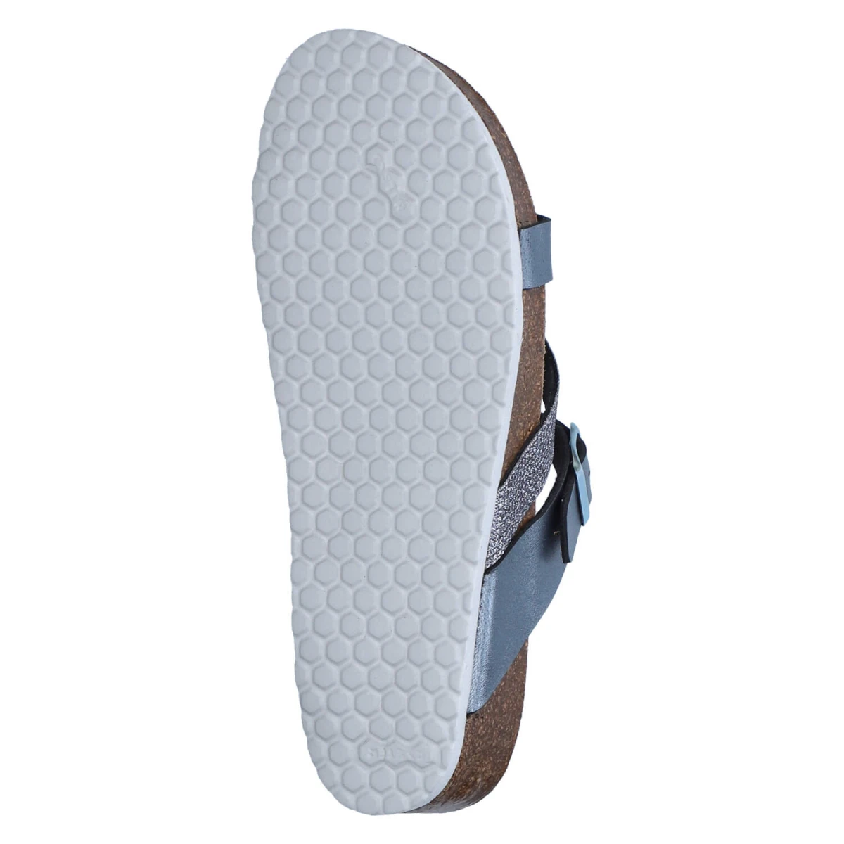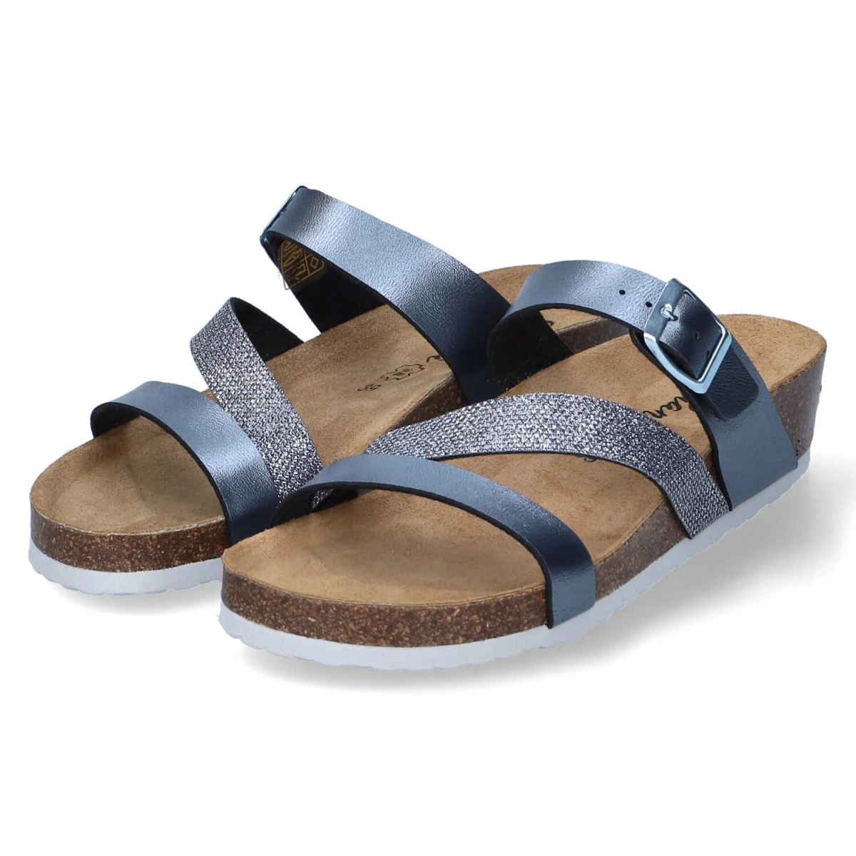 Beliana präsentiert eine graue Damen-Pantolette, die mit metallic schimmernder Oberfläche und sanften Glitzerakzenten edle Lässigkeit verkörpert. Drei filigrane Riemen mit Schnalle rahmen den Fuß elegant, die runde Spitze wirkt harmonisch und modern. Das Kunstleder mit designstarker Synthetik-Optik trifft auf ein relaxtes Leichtgewicht, das bei Stadtspaziergängen ebenso überzeugt wie beim Wochenendbrunch. Für Komfort sorgt das gepolsterte, vorgeformte Korkfußbett mit Lederdecksohle, während die flexible Profilsohle zuverlässigen Halt vermittelt. Die Passform fällt normal aus und macht Styling unkompliziert. Modetipp: Mit luftiger Culotte in Offwhite, Feinstrick in Taupe und einer metallischen Minibag entsteht ein minimalistischer, zugleich wirkungsvoller Look.