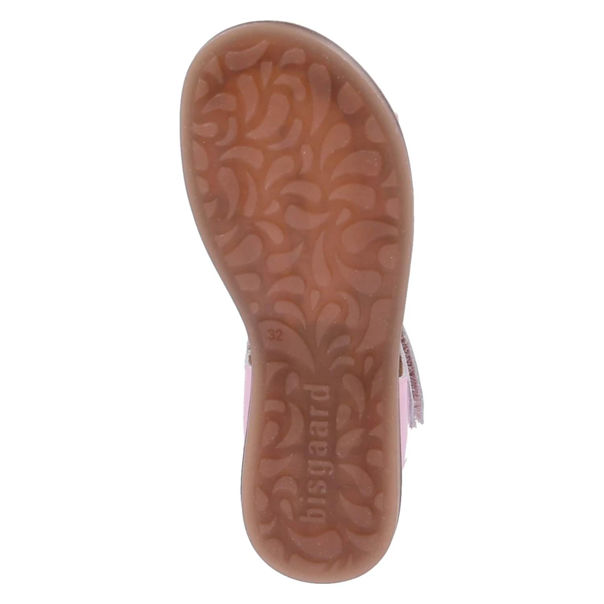 Mit AGNES O präsentiert Bisgaard eine Kindersandale, die Robustheit und Leichtigkeit verbindet. Langlebiges Echtleder im zarten Rosaton trifft auf eine offen geschnittene Front, wodurch die Füße angenehm belüftet bleiben. Für Komfort sorgt die leicht gepolsterte Lederdecksohle, während zwei Klettverschlüsse das An- und Ausziehen erleichtern und eine individuell sichere Passform ermöglichen. Der weich hinterlegte Fersenriemen mit Lackfinish setzt einen modernen Glanzpunkt. Am Frontriemen betont eine feine Lederblüte die Flechtprägung und verleiht dem Design Charme. Die flexible, rutschhemmende Laufsohle bietet verlässlichen Grip auf verschiedenen Untergründen. Der Größenhinweis fällt normal aus. Modetipp: Zu geblümten Sommerkleidern oder einem Leinenoverall in Ecru kommt das Rosa besonders schön zur Geltung, ein Haarband rundet das Outfit ab.