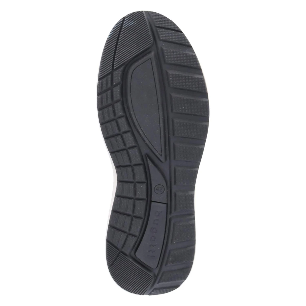 Als Teil der Green Spirit Linie überzeugt dieser Bugatti Low Sneaker mit einer luftigen Materialkomposition aus Textil und Synthetik sowie einer klaren, sportlichen Silhouette. Der blaue Farbverlauf verleiht Bewegung, der runde Leisten bleibt zeitlos. Der sockenartige Einstieg mit weich gepolsterter Ferse steigert den Tragekomfort, die Elastikschnürung ermöglicht ein schnelles Anpassen. Eine flexible, griffige Außensohle unterstützt sicheren Schritt, während verstärkte Zonen vorn und hinten zusätzliche Robustheit bieten. Innen punktet die textile Decksohle, das gepolsterte Wechselfußbett ist herausnehmbar und sorgt für individualisierbaren Komfort. Das Modell fällt normal aus und zeigt feine schwarze Akzente. Modetipp: Perfekt zu lässigen Cargo-Pants in Stein und einem weißen Overshirt für einen frischen Übergangslook.