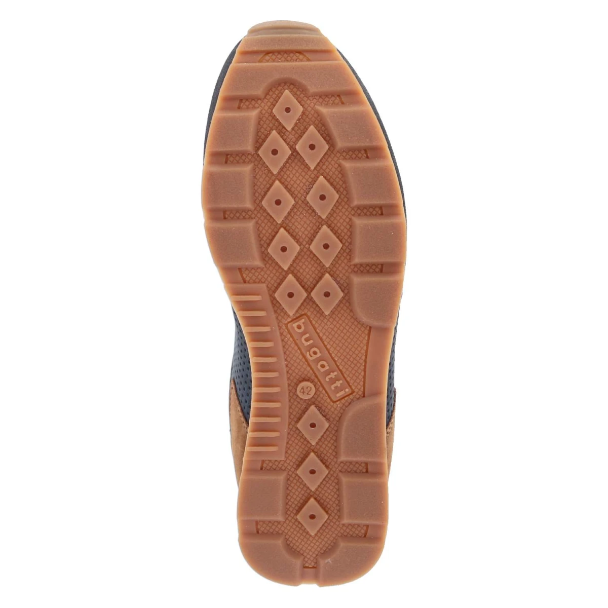 Der Low Sneaker von Bugatti bringt Komfort auf den Punkt: gepolsterter Einstieg, rundumlaufende Passformstabilität und eine Laufsohle, die Flexibilität mit Grip verbindet. Das blaue Obermaterial aus Synthetik ist pflegeleicht und wird durch feine Lochung sowie eine kontrastfarbene Ferse in Braun aufgelockert. Das Schnürsystem mit elastischen Bändern sitzt sicher, ohne zu drücken, und harmoniert mit der normal ausfallenden Leistenform. Textile Decksohle und ein austauschbares, weich gepolstertes Fußbett sorgen für angenehme Dämpfung. Verstärkte Partien an Zehen und Ferse erhöhen die Robustheit, dezentes Branding verleiht Wertigkeit. Für Erwachsene entwickelt und vielseitig einsetzbar von Frühling bis Herbst. Modetipp: Zu ungefüttertem Navy-Sakko, weißem Oxford-Hemd und schmaler Chino gelingt ein zeitgemäßes Business-Casual-Update.