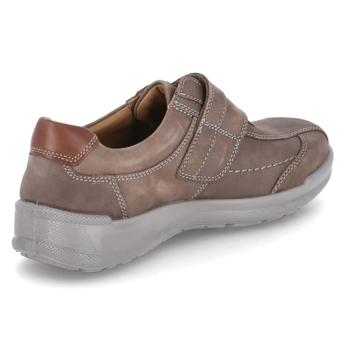 Der Jomos Slipper interpretiert gediegene Herrenmode neu: warmes Braun, samtiges Rauleder und sorgfältig gesetzte Ziernähte ergeben ein souveränes Erscheinungsbild. Robustes Echtleder trifft auf Komfortdetails wie den gepolsterten Einstieg und die runde Spitze, die auch längere Wege angenehm macht. Der Klettverschluss erlaubt schnelles Justieren, die flexible Laufsohle mit Profil gibt Halt auf Stadtpflaster und Parkwegen. Im Schuh schafft die Lederdecksohle ein wertiges Tragegefühl; das komfortable Wechselfußbett kann zur Pflege entnommen oder gegen individuelle Einlagen getauscht werden. Der natürliche Look lässt sich vielseitig kombinieren, von smart bis lässig. Modetipp: Mit grauer Wollhose, Hemd und feinem Overshirt wirkt der Slipper citytauglich; zu Cord und Rollkragen entsteht ein gehobener Weekend-Look.