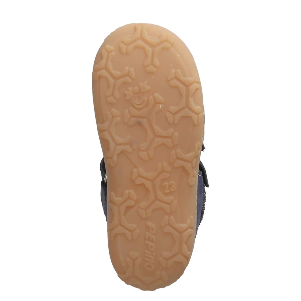 Durchdacht bis ins Detail präsentiert sich der Kinder-Klettschuh EBI von Pepino. Das blaue Rauleder-Obermaterial ist robust und atmungsaktiv, innen umsorgt ein weiches Lederfutter den Fuß. Die runde Spitze, Weite Mittel und eine normal ausfallende Passform bieten Bewegungsfreiheit und sicheren Sitz. Zwei Klettverschlüsse erleichtern den Einstieg, während Polster am Schaft und das austauschbare, weich gepolsterte Fußbett den Komfort erhöhen. Die flexible, rutschhemmende Laufsohle unterstützt natürliche Abrollbewegungen und gibt zuverlässigen Grip, verstärkte Partien an Zehen und Ferse erhöhen die Strapazierfähigkeit. Orangefarbene Details setzen lebendige Akzente und verleihen dem Schuh eine sportliche Note. Decksohle aus Leder komplettiert das hochwertige Innenleben. Modetipp: Mit Cordhose und Sweatshirt in Erdtönen wirkt das Blau besonders klar; orangefarbene Accessoires greifen das Detailspiel auf.