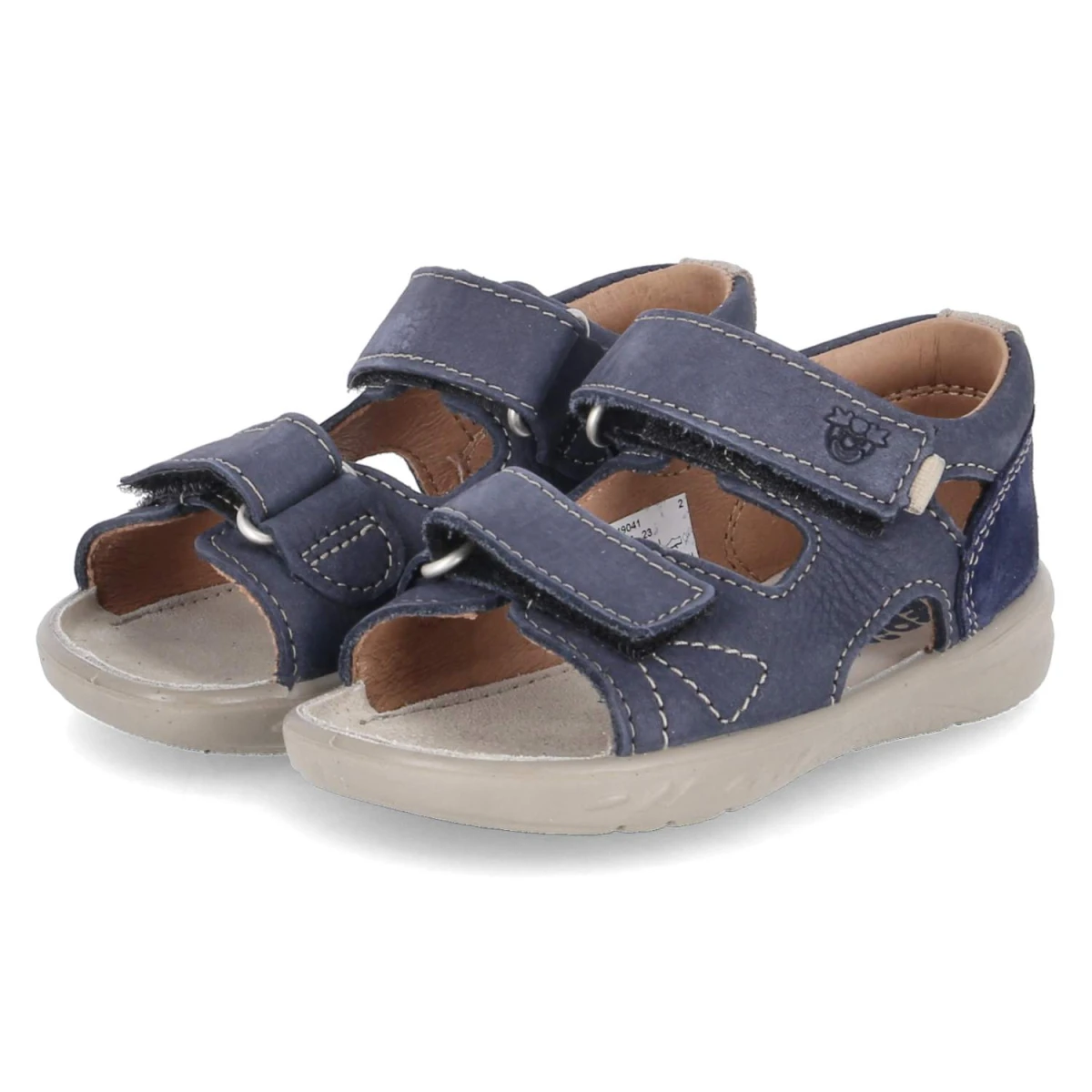 Die Miniletten CLAAS von Pepino vereinen klassisches Design mit kindgerechter Funktion. Blaues Rauleder bringt eine ruhige Farbigkeit ins Outfit, während langlebiges Echtleder und ein hautfreundliches Lederfutter die hochwertige Basis bilden. Die Lederdecksohle schmeichelt dem Fuß, der gepolsterte Einstieg erhöht den Tragekomfort auch bei längeren Ausflügen. Zwei praktische Klettverschlussriemen ermöglichen individuelles Anpassen und fixieren sicher, ohne einzuengen. Der offene Zehenbereich sorgt für Frische, die flexible, rutschhemmende Laufsohle bietet verlässlichen Halt beim Rennen, Springen und Balancieren. Durch den normal ausfallenden Schnitt gelingt die Größenauswahl unkompliziert. Modetipp: Für einen ruhigen Ton-in-Ton-Look das Blau mit Jeans und einem hellblauen Hemd oder T-Shirt kombinieren; farbige Söckchen mit kleinen Motiven setzen spielerische Highlights.