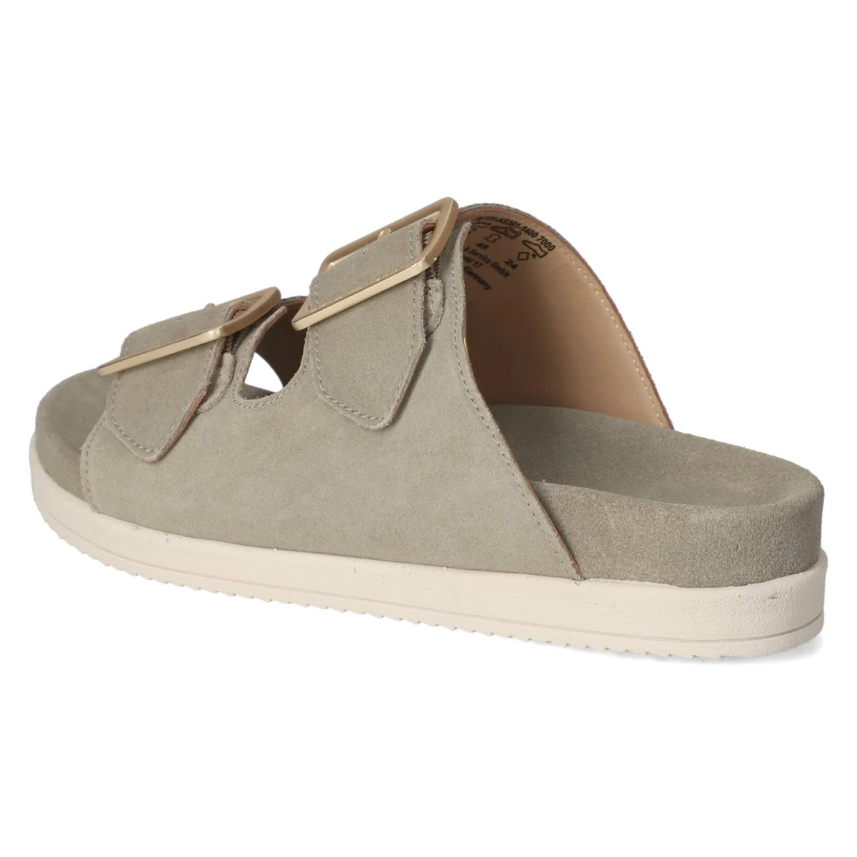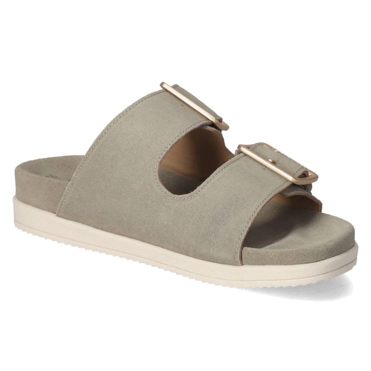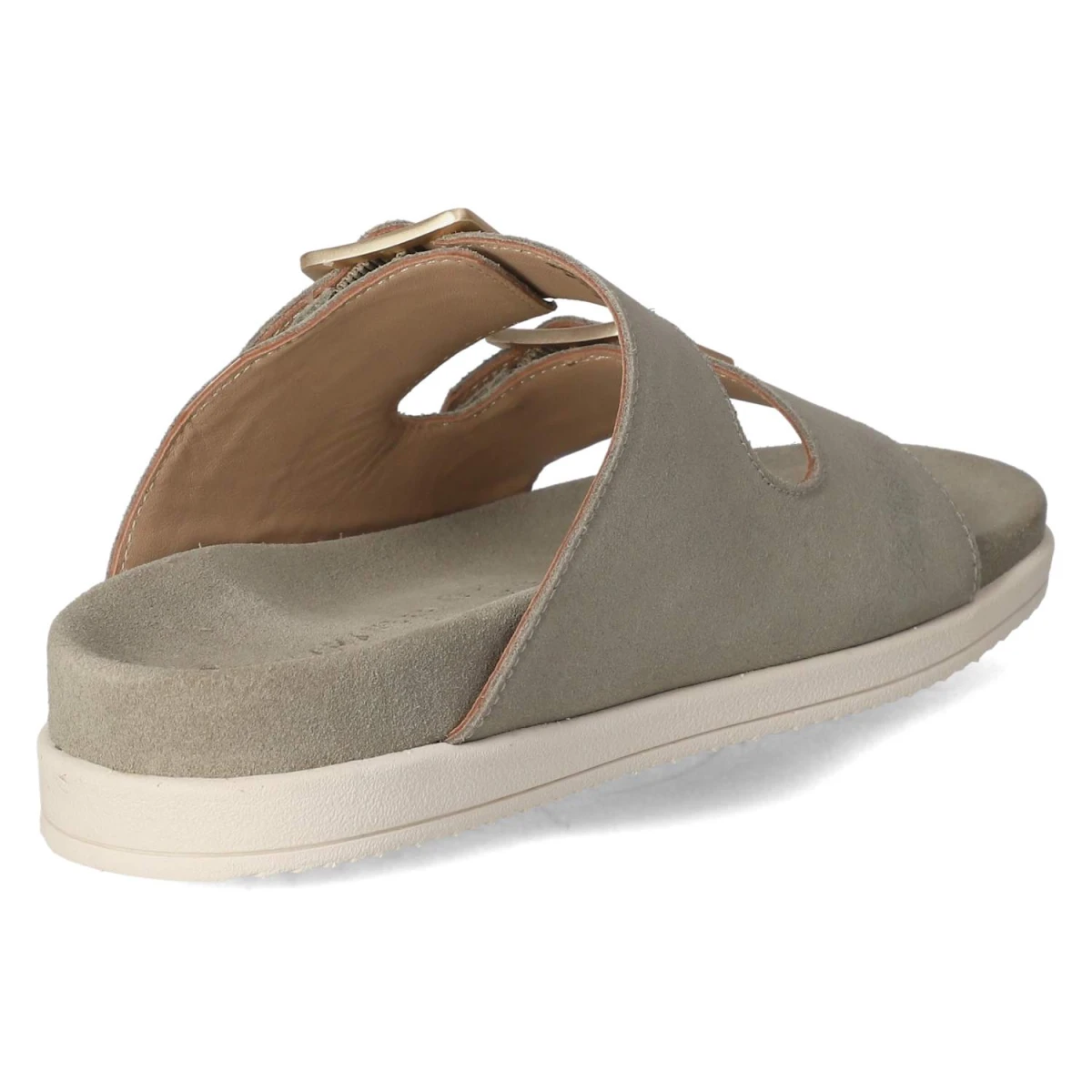 Ein Hauch von Resort-Flair begleitet diese Salamander Pantoletten, deren grünes Rauleder Farbtiefe und Weichheit gekonnt vereint. Die runde Spitze vermittelt Nonchalance, während robuste, fein justierbare Schnallen den Halt verlässlich sichern. Im Inneren sorgt eine hautfreundliche Lederdecksohle für angenehmes Klima, das vorgeformte, gepolsterte Fußbett unterstützt entspanntes Stehen und Gehen. Eine flexible, rutschfeste Laufsohle gibt Sicherheit auf Fliesen, Holz oder Asphalt. Gefertigt aus langlebigem Echtleder, überzeugen die Schuhe mit wertigem Griff und beständiger Form. Der Schnitt fällt normal aus und gliedert sich mühelos in den Alltag. Modetipp: Zu sandfarbenen Leinenhosen und einem gestreiften T-Shirt entwickelt das Grün lebendige Frische; eine Sonnenbrille im Retro-Stil setzt den finalen Akzent.