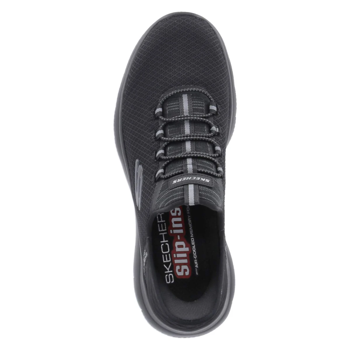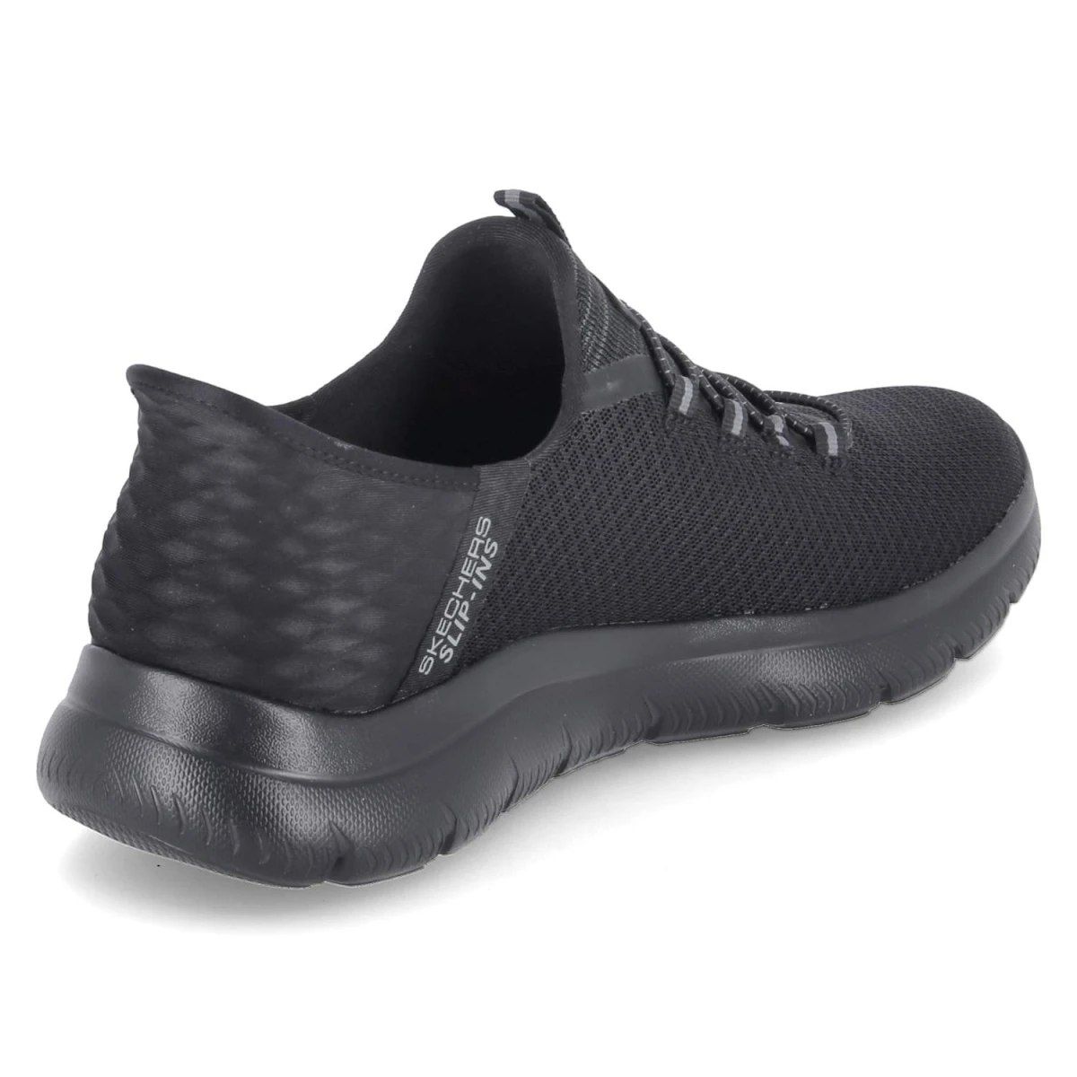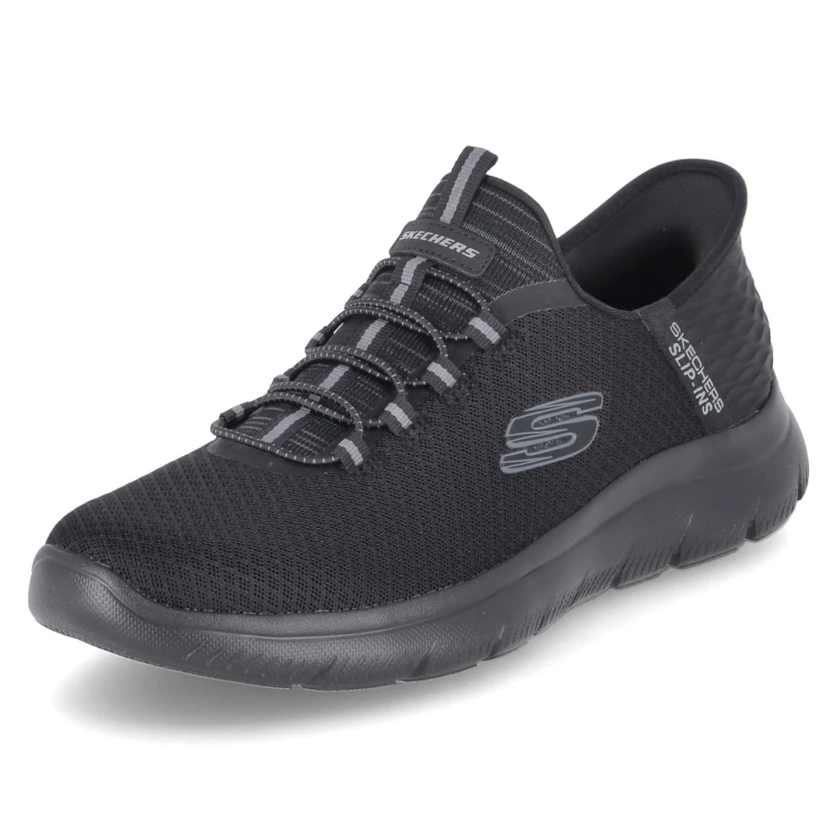 Puristisches Design trifft auf Komfort: Der Skechers Slip-Ins SUMMITS präsentiert sich als schwarzer Textil-Sneaker mit runder Spitze und angenehm leichtem Tragegefühl. Durch das slip-on Konzept entfällt jeder Verschluss, zugleich stützt die erstklassige Memory-Foam-Fußbettung bei langen Wegen. Die textile Decksohle liegt weich an, das Modell fällt normal aus und wirkt durch die reduzierte Formgebung zeitlos. Vegane Materialien sprechen für eine bewusste Materialwahl, und die Waschmaschinen-Eignung macht die Pflege unkompliziert. Ob Freizeit, Büro oder Reise, die dezente Optik lässt vielfältige Kombinationen zu und fügt sich mühelos in bestehende Garderoben ein. Modetipp: Zur dunkelgrauen Wollhose und einem minimalistischen Hoodie entsteht ein smarter Athleisure-Mix.