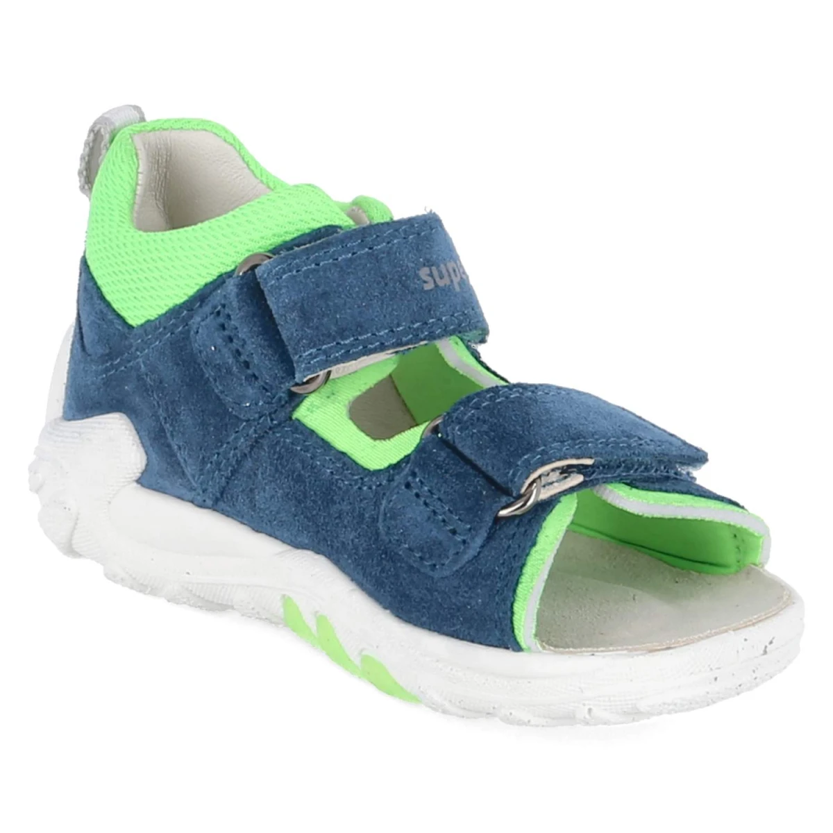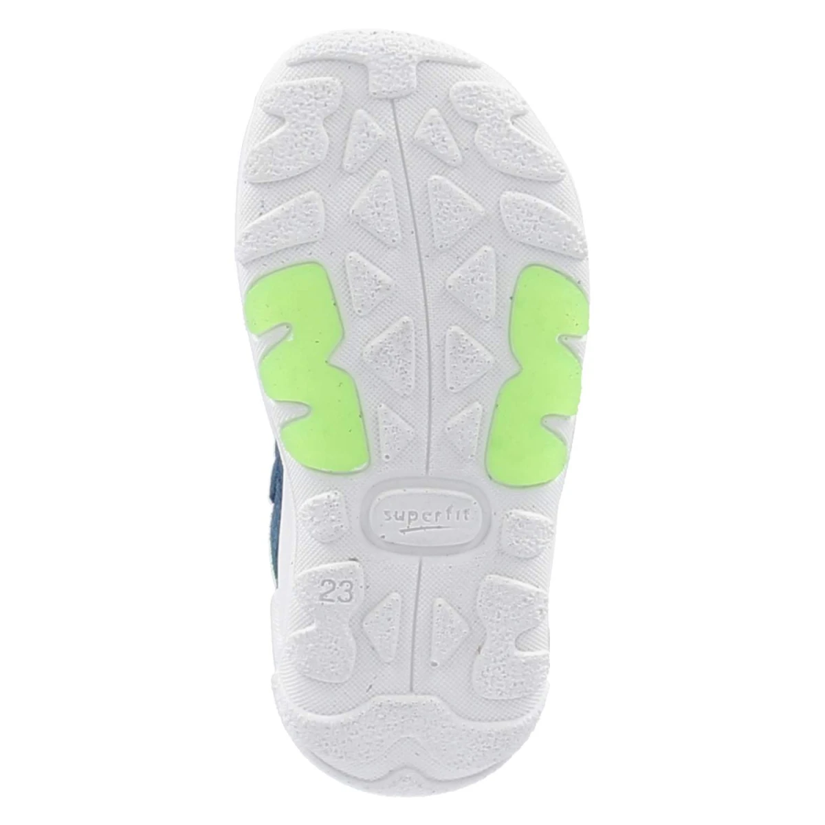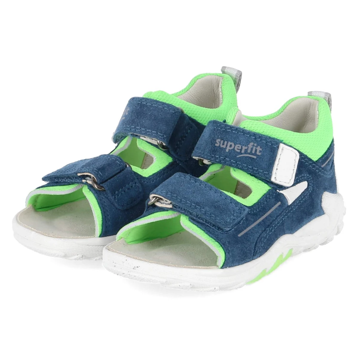 Als verlässlicher Begleiter für warme Tage überzeugt die Miniletten FLOW von Superfit mit durchdachter Ausstattung. Das Obermaterial aus Leder und Textil ist robust und zugleich angenehm am Fuß, die offene Schuhspitze sorgt für Luftigkeit. Zwei Klettverschlüsse erleichtern das Anziehen und sichern eine passgenaue Weite, unterstützt von der WMS-Schuhweite Mittel und normal ausfallender Größe. Die Lederdecksohle ist hautfreundlich und bequem, ein weich gepolsterter Einstieg erhöht den Komfort, während der verstärkte Fersenbereich Stabilität vermittelt. Die flexible, rutschhemmende Laufsohle fördert einen sicheren Auftritt beim Toben und Laufen. In klassischem Blau fügt sich der Schuh mühelos in viele Outfits ein. Modetipp: Ein maritimer Look mit Streifenshirt, blauen Shorts und leichten Stricksöckchen ergänzt die Sandale besonders stimmig.